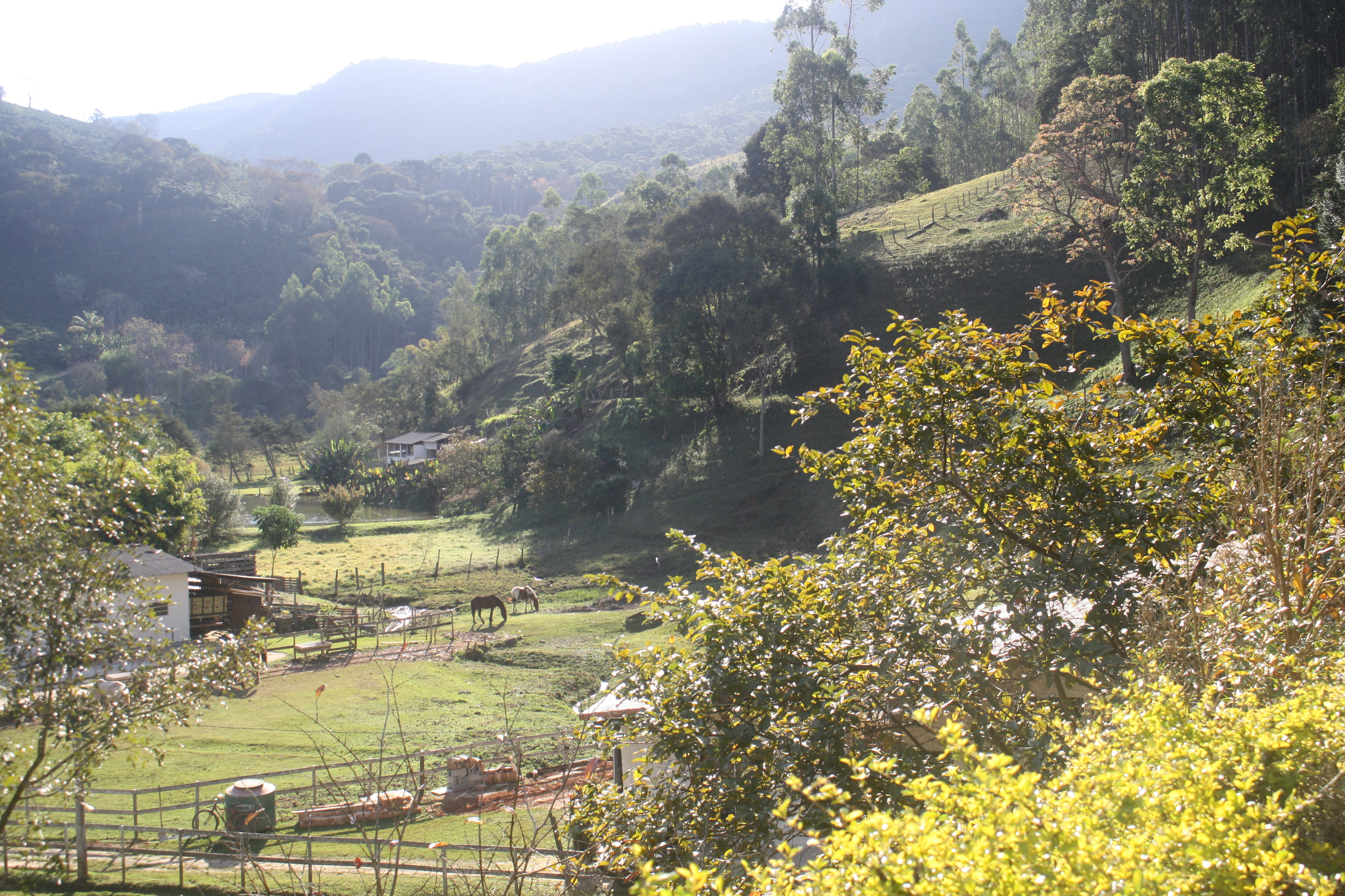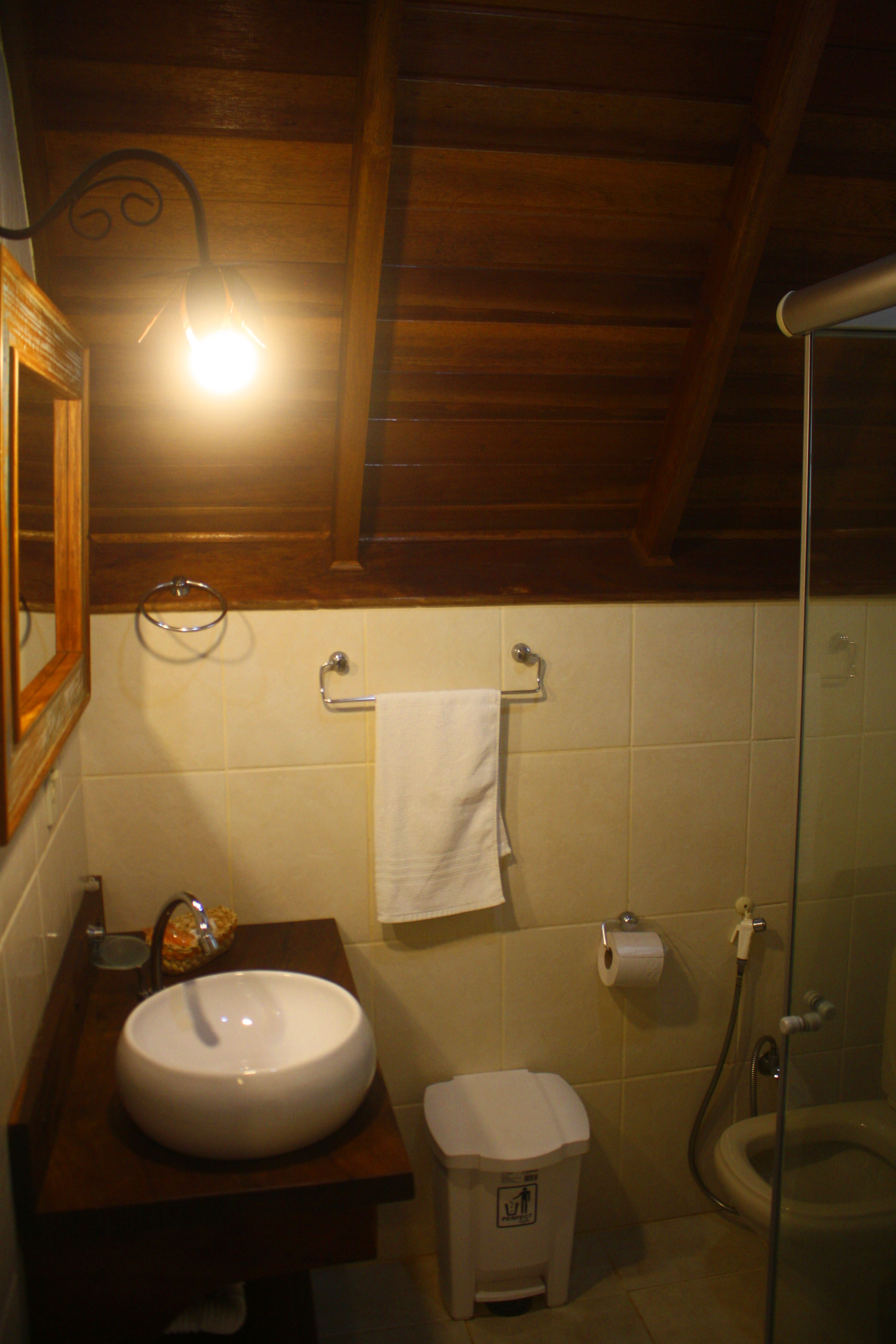 Banheiro privativo com box blindex. Varanda com rede e linda vista para a serra das águas.